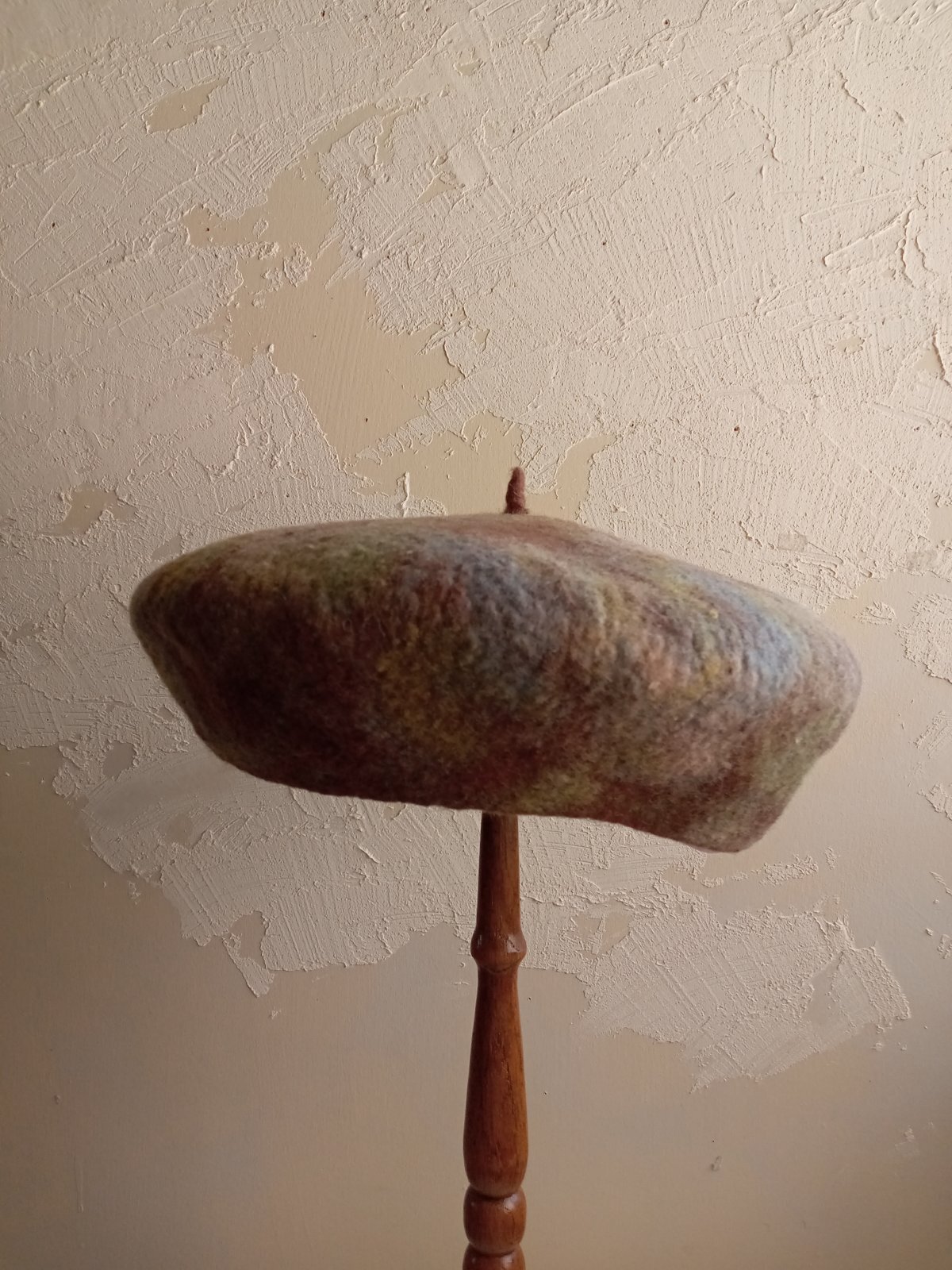 イギリスメリノウール草木染もこもこベレー★1点物作品★