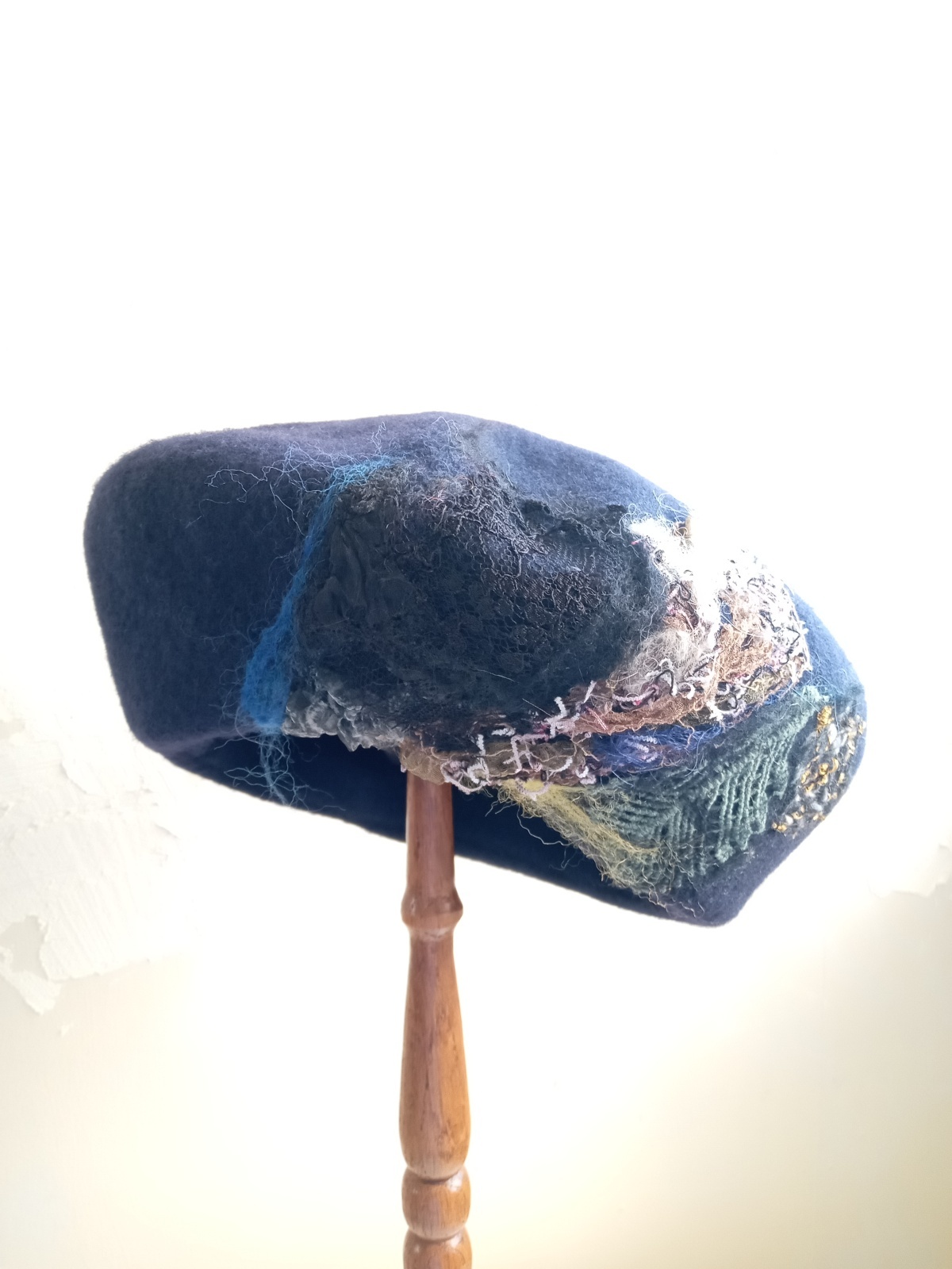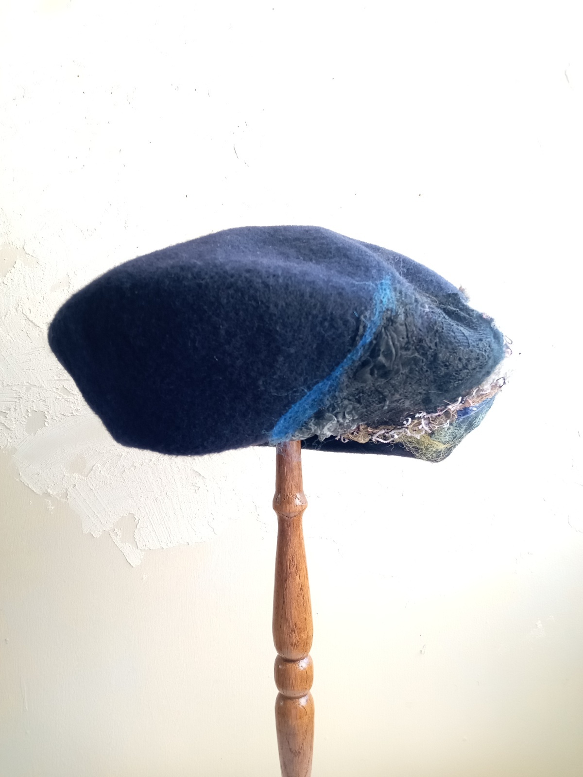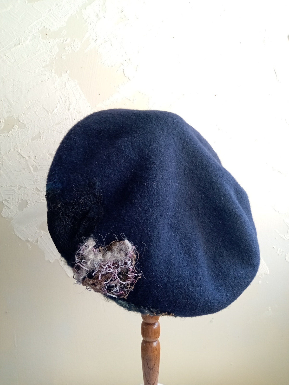 イギリスのメリノウールのベレー帽に コラージュいたしました。