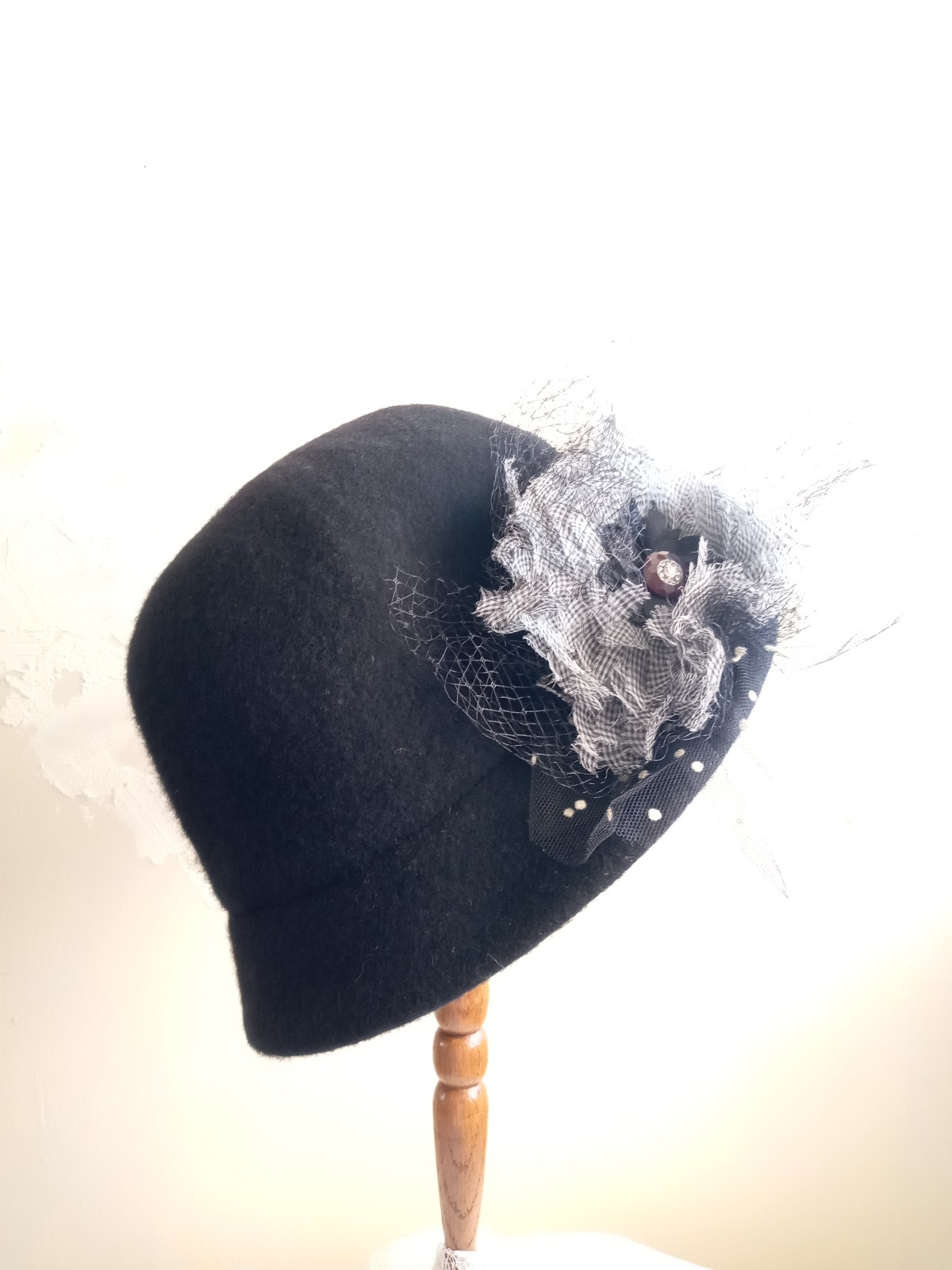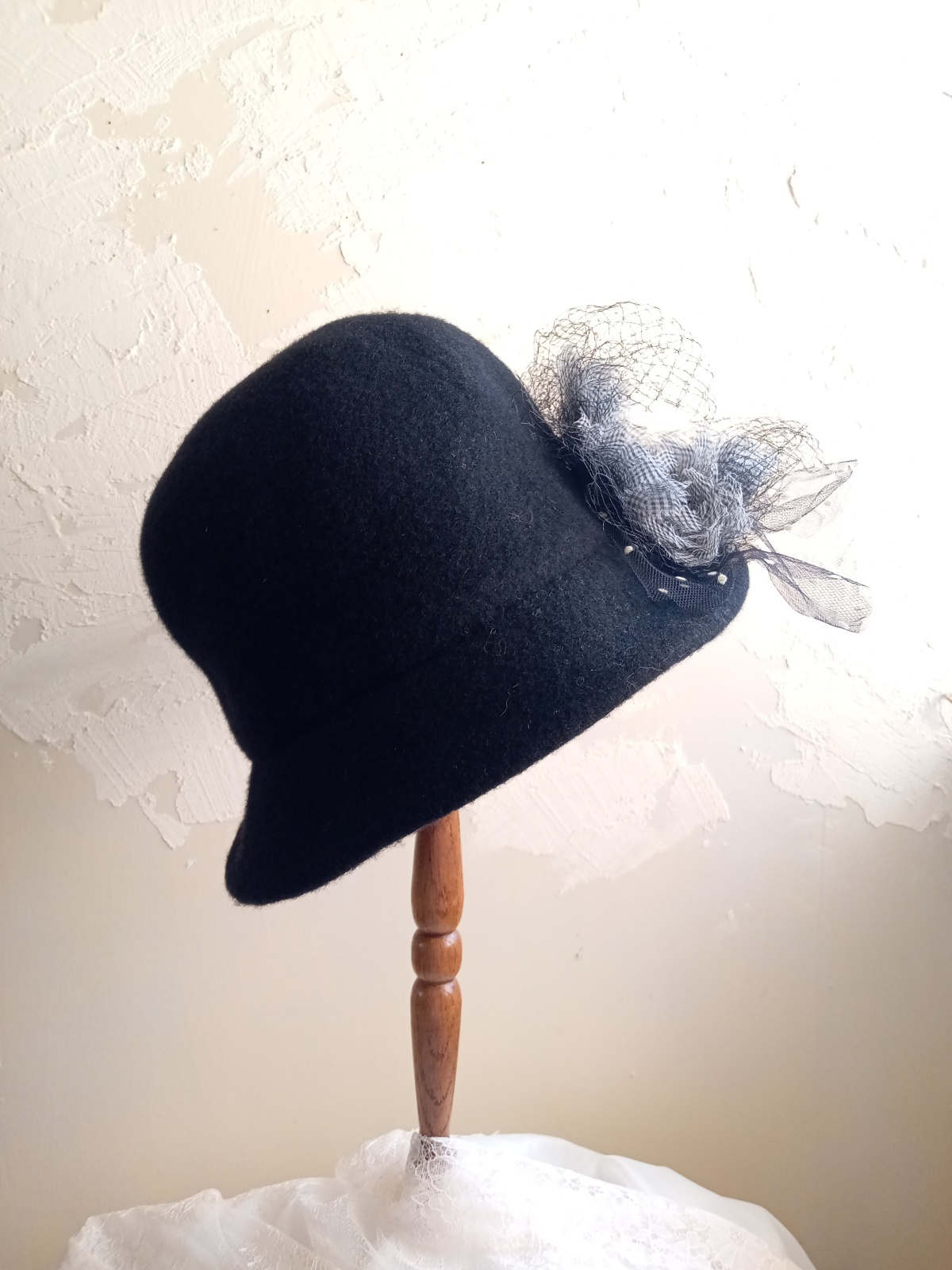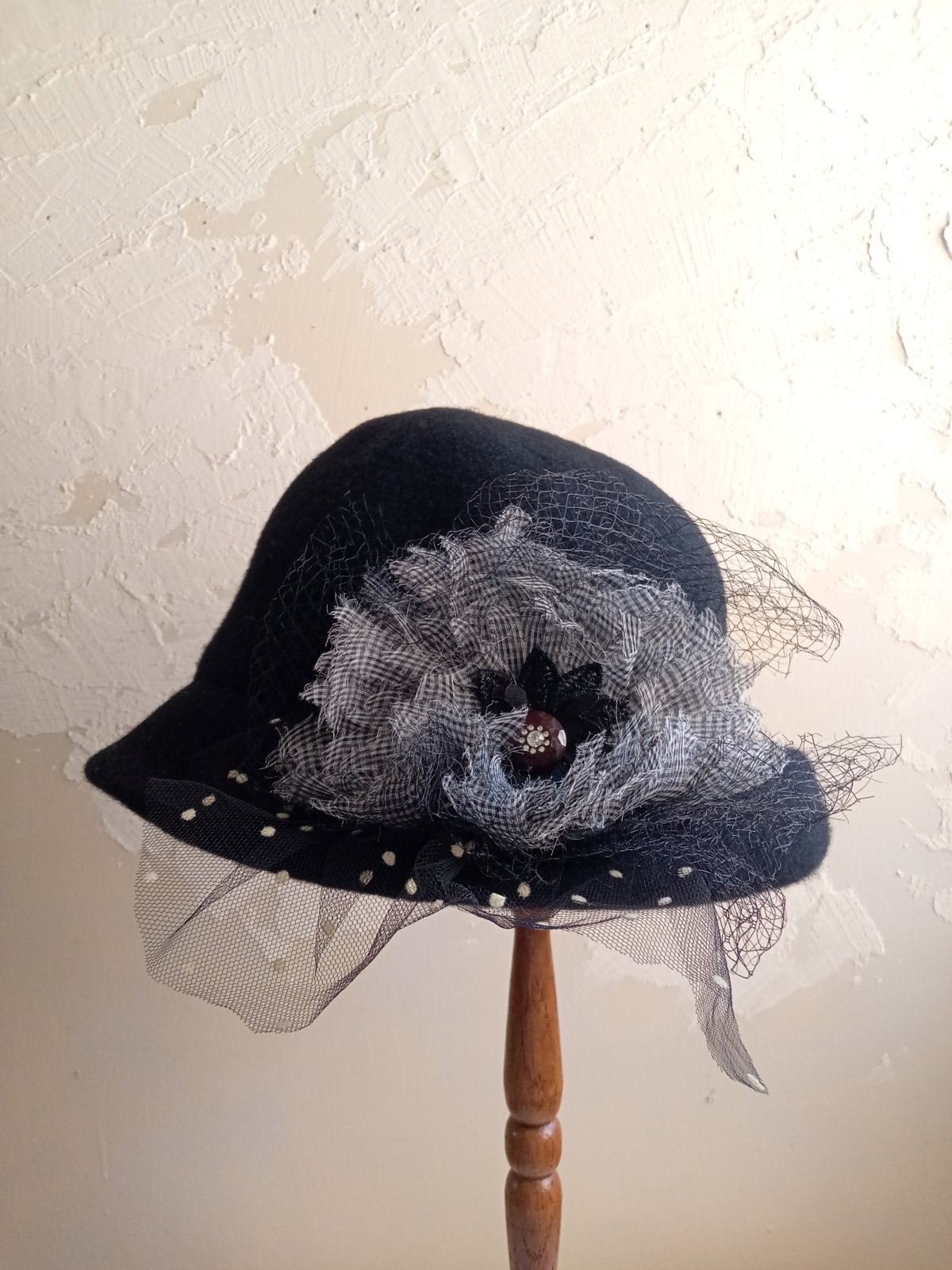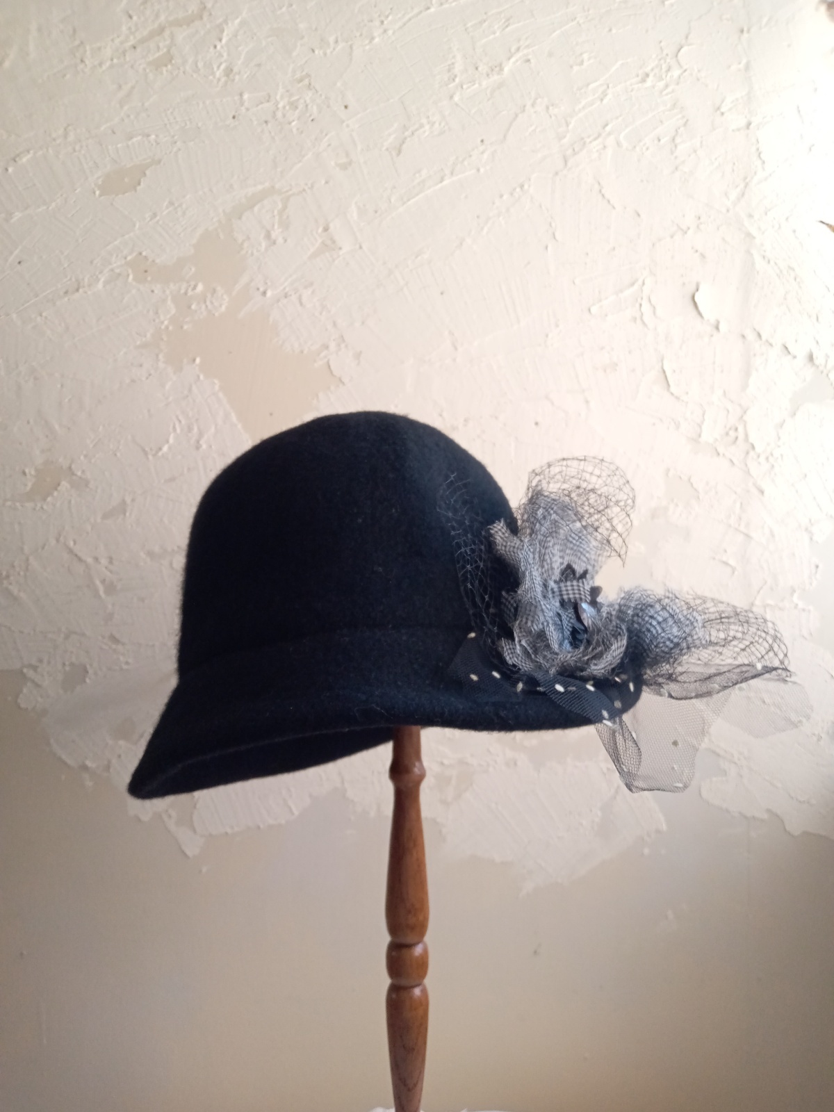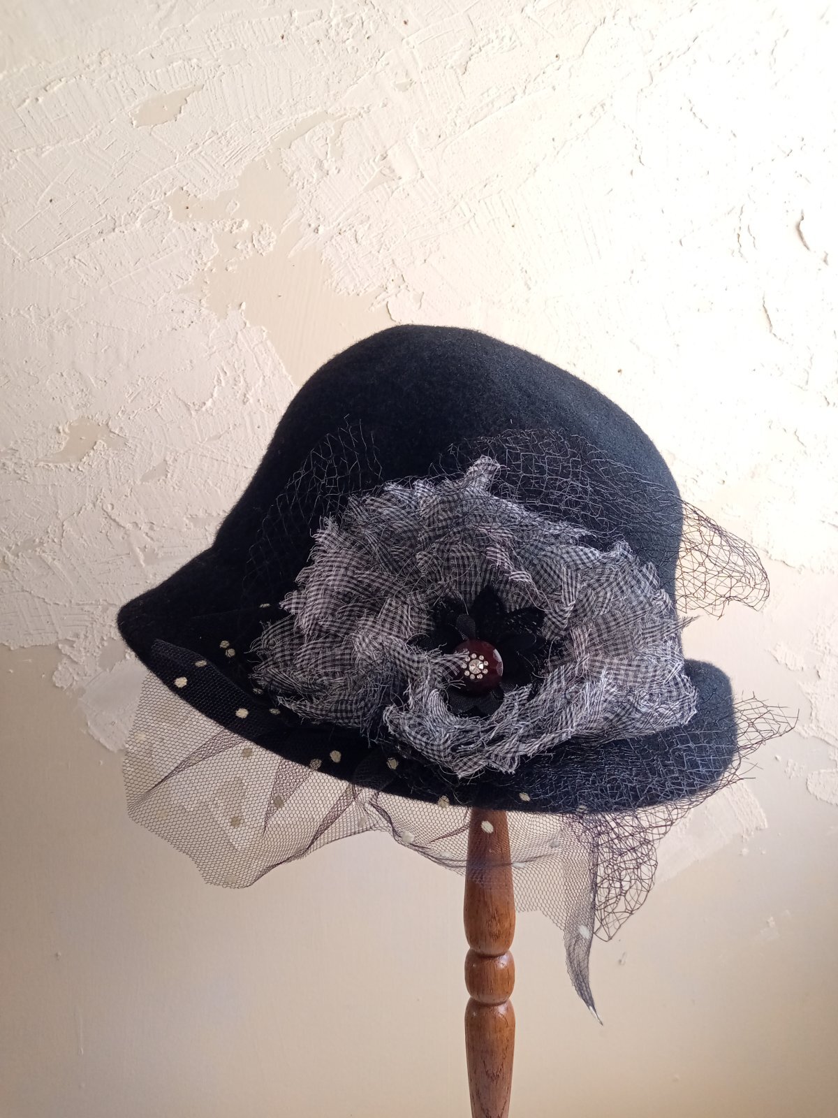 イギリスのメリノウールを使用して製作したハットに、コラージュいたしました。